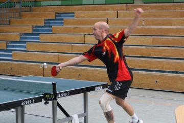 Im Spiel an der Tabellenspitze konnte Frank Luks gegen die Hofheimer Nummer Eins Marc Schwaiger einen Punkt für Wallau erringen.