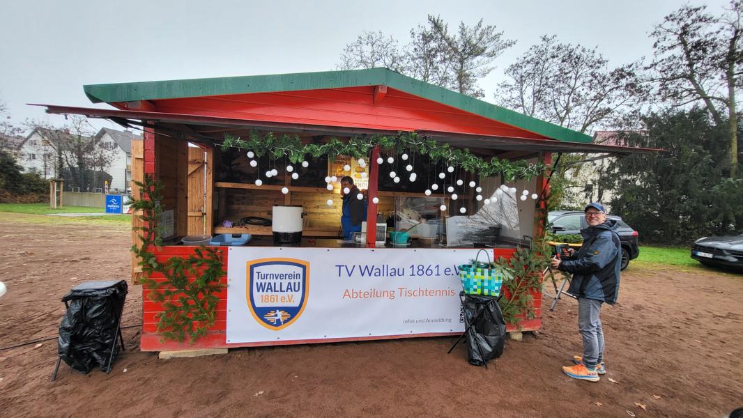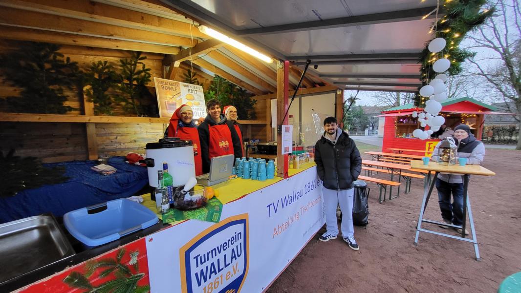 30.11.2025 Der Wallauer Weihnachtsmarkt wird zum tollen EventDas hat richtig viel Spaß gemacht. Am Samstag vorm 1. Advent war der Wallauer Weihnachtsmarkt und nach längerer Pause auch wieder TV Wallau Tischtennis aktiv. Besonders beliebt am Stand des TVW waren die Ofenkartoffeln mit verschiedenen Topics und die Feuerzangenbowle. Auch die Kartoffelchips kamen sehr gut an. Bei nasskaltem Wetter trafen sich viele ehemalige Tischtennisspieler, Bekannte aus dem Ort und alle die einen Bezug zum Wallauer Tischtennis haben. Schon jetzt ist klar, in einem Jahr sind wir wieder dabei.